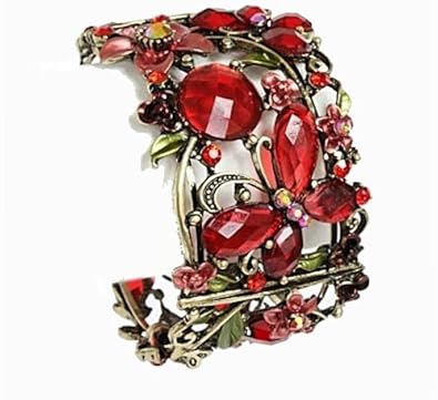 Antique Goldtone Red Crystal Butterfly Bangle Bracelet Fashion Jewelry