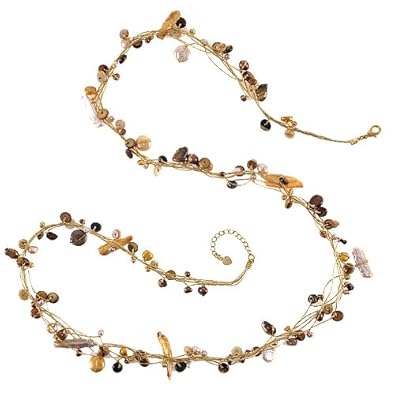Chuvora Genuine Multi-Colored Fresh Water Cultured Pearl Gold Silk Thread Long Necklace 36''