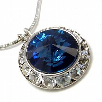 Here is a beautiful crystal framed Montana Blue Swarovski pendant necklace. Pendant measures approximately 3/4" in diameter and hangs from a delicate 16" long silver snake chain with a lobster claw clasp and a 2 1/2" extension. This faceted jewel will enhance your look tremendously! Your necklace will come to you in a foil gift box perfect for gift giving. Box may be a different color than the one shown. Lead and Nickel Free.